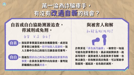 主旨: | 函轉教育部國民及學前教育署「詐騙車手下場超慘,千萬不要以身試法!」宣導懶人包(如附件),請透過多元管道加強宣導,請查照。 |